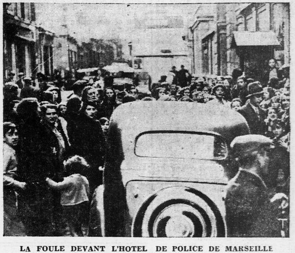L’arrivée, que l’on ne peut pas qualifier de discrète, du chef de la Sécurité Couplet, leva les derniers soupçons qui pouvaient encore étreindre la foule. L’affaire était sérieuse et la seule affaire sérieuse en cours à ce moment là dans Marseille était l’affaire Malmejac. La ravisseuse se trouvait donc derrière ces murs. De curieuse, la foule bascula dans l’hostilité la plus complète.